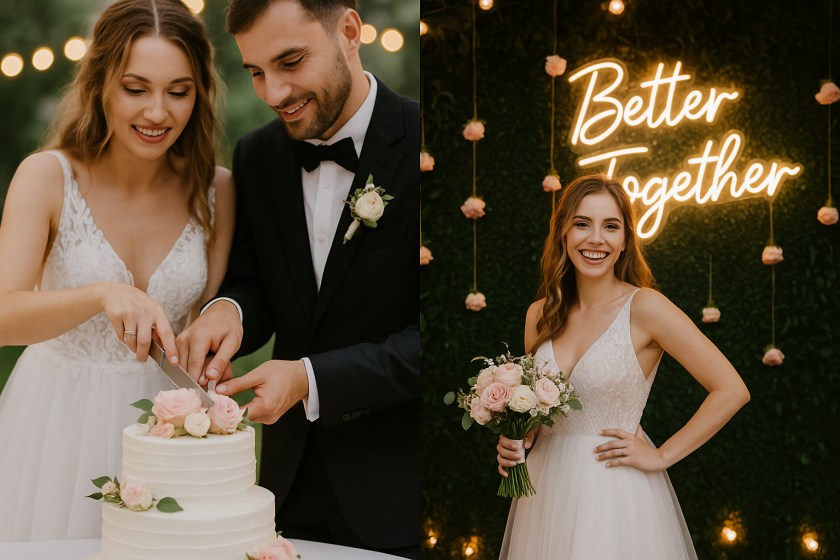 Například: rozbijte talíř u obřadu, ale místo klasického cukroví dejte hostům domů malou láhev prosecca s vaší etiketou. Nebo se nechte přenést přes práh a zároveň uspořádejte večerní tanec pod neónovým nápisem se svým jménem. Fantazii se meze nekladou! 🎉